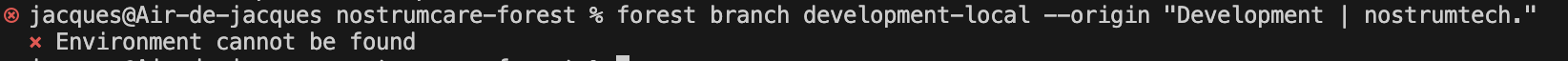 After the forest init I get my forest secrets for the Development environment, but when I try to create a new branch for the Development environment, I get the following errors in Observed behavior part